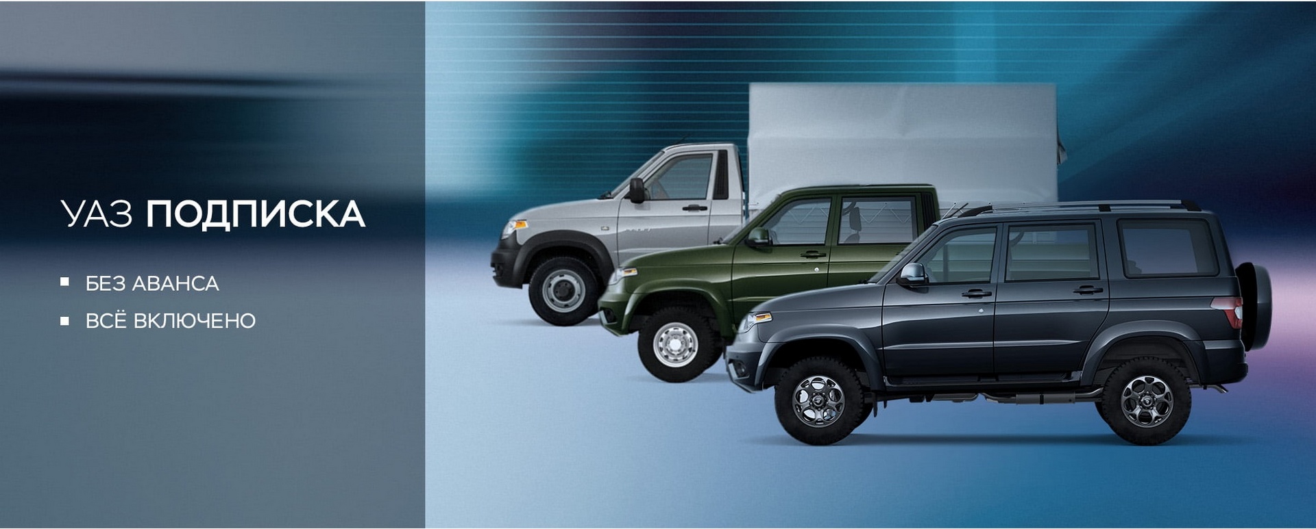 The monthly payment can be calculated on the web page uaz.ru/subscribe and varies depending on the model selected, modifications, specs, the subscription period, and an estimated annual mileage provided by the client. The price is set down in the contract and remains fixed for the entire subscription period.