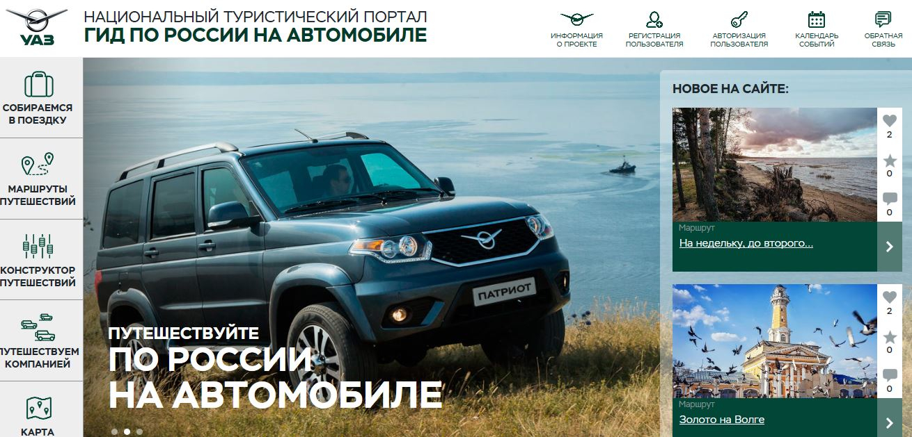 УАЗ запускает новый информационный ресурс для путешественников и любителей активного отдыха - национальный туристический портал «Гид по России на автомобиле» uaz-travel.ru. Вместе с запуском портала объявляется конкурс на «Лучший маршрут по России на автомобиле», приуроченный к 75–летию Ульяновского автомобильного завода.
