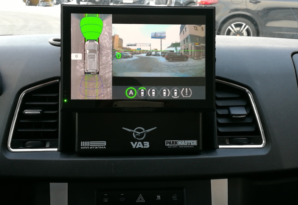Особенностью представленного решения является наличие в автомобиле УАЗ ПАТРИОТ кнопки «SERVICE», одним нажатием которой водитель может в любой момент связаться с диспетчером, который видит положение автомобиля на карте, получаемое по сигналам от спутников ГЛОНАСС. Наличие такой кнопки позволяет решать массу оперативных вопросов, таких как вызов скорой технической или правовой помощи прямо на дороге и др.